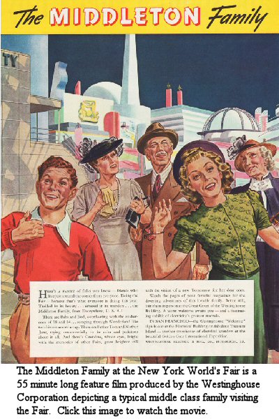 Many Americans were introduced to the idea of television at the fair. One feature was a closed circuit studio where visitors could be televised and friends and family could view their performance on a receiver in an adjacent room.